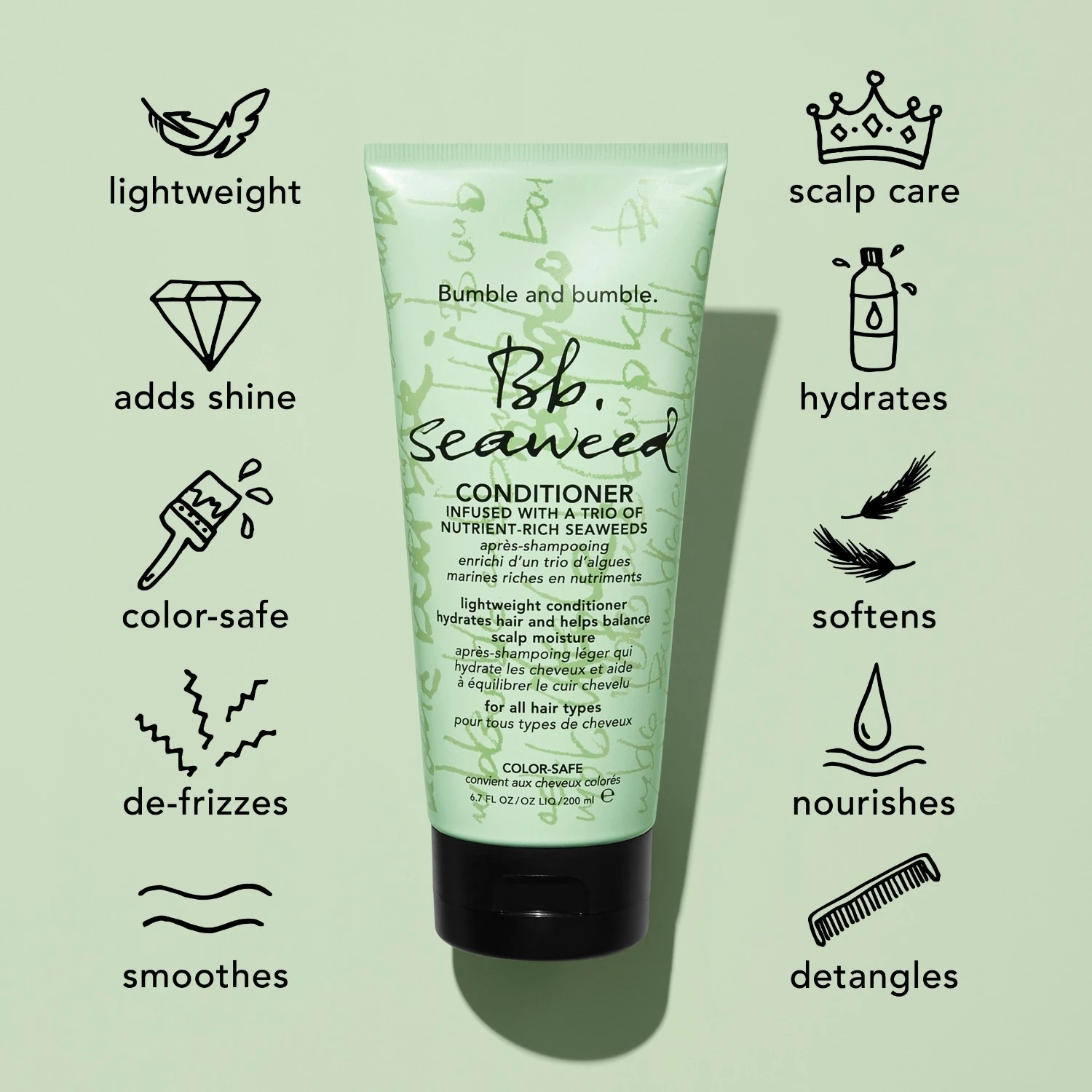 Geniet van glanzend, gevoed haar met deze romige, luchtige conditioner, verrijkt met een trio van voedende Royal Sugar Kelp, Pacific Sea Kelp en groene microalgen. Deze hydraterende formule helpt de vochtbalans te herstellen en voedt het haar en de hoofdhuid voor lokken die luchtig, glad en vrij van residuen aanvoelen. Dit alles terwijl het pluizen vermindert en een zachtheid en glans geeft die volgens onze professionals “tot nu toe niet te vinden was op Bb.Land”. Een nieuwe, met zorg gemaakte versie van de originele Seaweed Conditioner formule, verantwoord verpakt met 100% gerecycled materiaal.