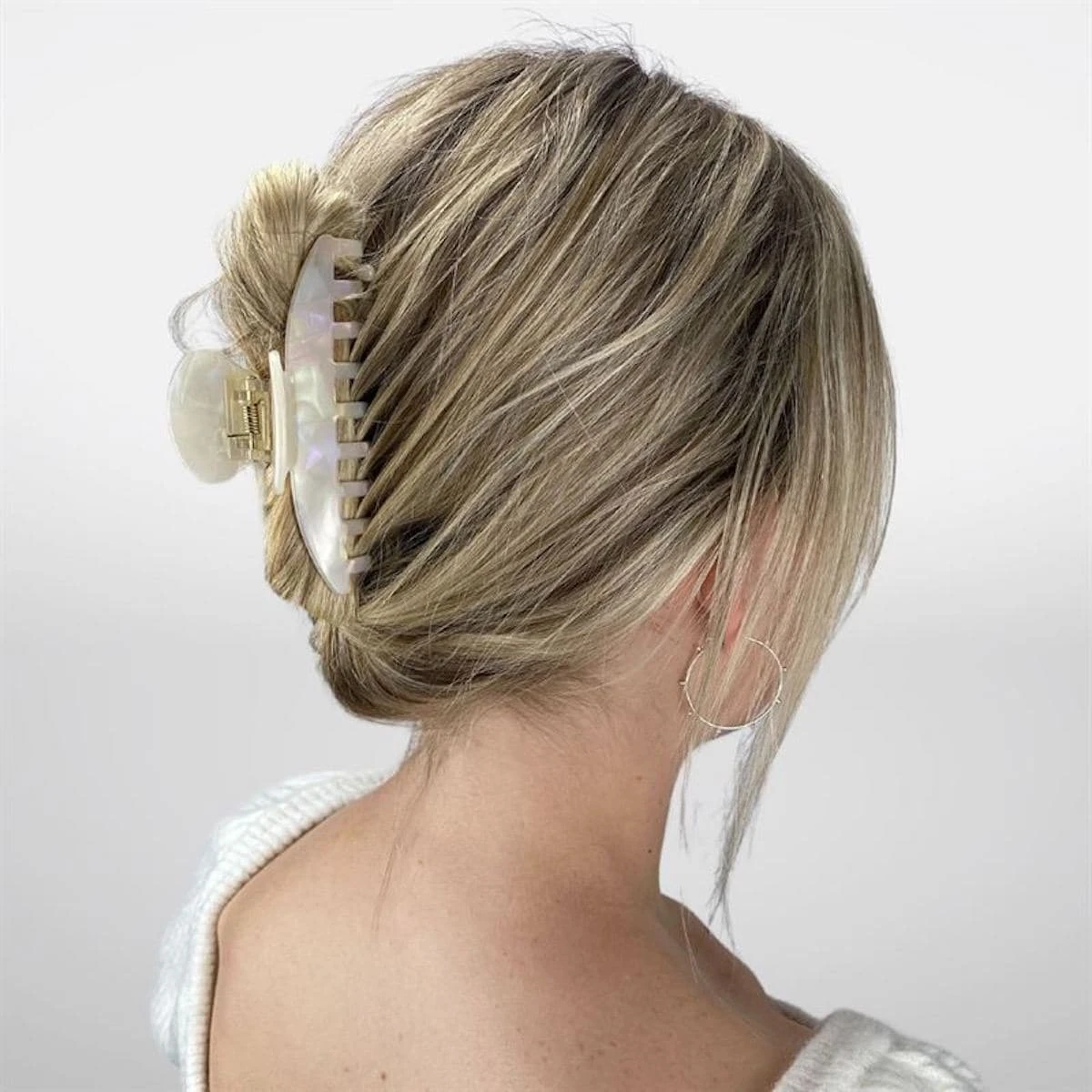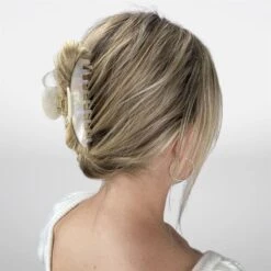 Fijne haarclip met een prachtige pareltint en gemarmerd patroon in lichte kleuren. Het voegt een kleurrijk detail toe aan je kapsel.