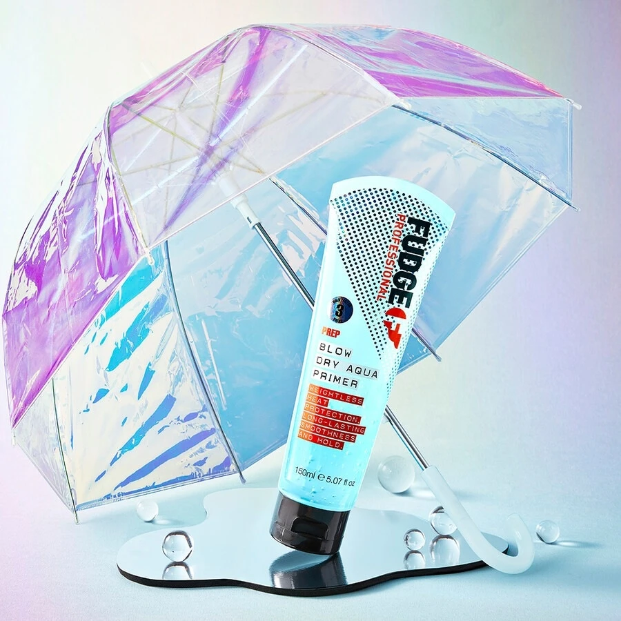 De Fudge Blow Dry Aqua Primer is een gelachtige foundation voor het haar die het haar beschermt tegen de föhnwarmte en zorgt voor een langere houdbaarheid van het kapsel. Met zijn speciale textuur kan de Prep & Prime haarverzorging moeiteloos gelijkmatig in het haar worden verdeeld en op alle haartypes worden gebruikt. Door de Weather Shield Technologie creëert het product een onzichtbare beschermingsscherm aan de buitenkant van het haar, waardoor het betrouwbaar beschermd is tegen vocht. Bij gebruik van warmtetools zoals föhn, stijltang en krultang beschermt de primer het haar tot 230 graden tegen hitte en laat een natuurlijk, gewichtloos gevoel achter.