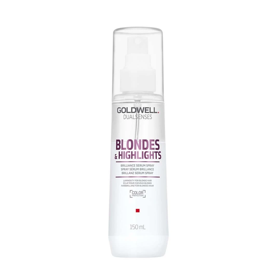 Blond & Highlights Brillance Serum Spray van Goldwell Wij presenteren een zeer speciaal haarserum voor gebruik op blond, geblondeerd of geblondeerd haar. De Brillance Serum Spray uit de Blondes & Highlights serie is een haarbehandeling die uw haar al na één behandeling een glamoureuze glans geeft, waardoor het er bijzonder gezond en vitaal uitziet. De spray van Goldwell kan ook nog heel eenvoudig en probleemloos worden gebruikt, waardoor het haarserum gemakkelijk kan worden geïntegreerd in de dagelijkse haarverzorging. Naast een verhoogde glans krijgt uw haar ook een effectieve hittebescherming, die essentieel is voor de volgende hittestyling.
