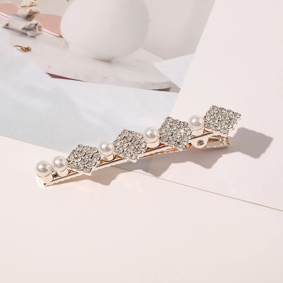 Sprankelende haartoonhaarspons met parels. De glanzende steentjes schijnen in de zon en geven het haar een licht en elegant temperament. De haarclip kan uw gulle en elegante temperament benadrukken. Dit kapsel is eenvoudig en mooi en is geschikt voor dagelijks gebruik en verschillende formele gelegenheden zoals partijen, bruiloften, gebeurtenissen, enz.