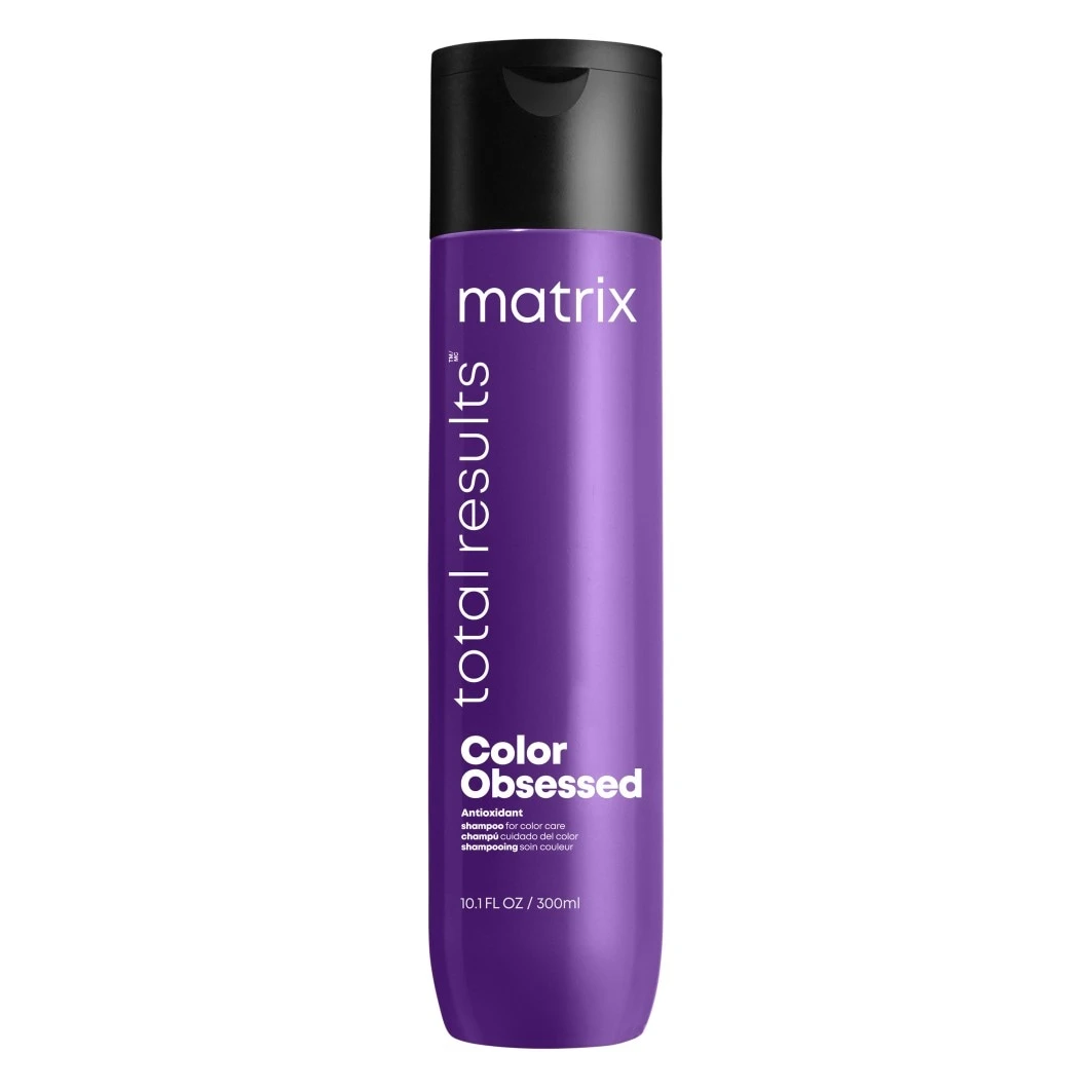 De Matrix Total Results Color Obsessed Shampoo is een milde shampoo voor gekleurd haar. De shampoo reinigt zacht en helpt gekleurd haar te beschermen tegen kleurvervaging, voor een langdurig mooie, intense en levendige haarkleur. Deze shampoo is onderdeel van de Color Obsessed-lijn met krachtige antioxidanten die het haar beschermen tegen schadelijke invloeden van buitenaf. De lijn houdt de kleur stralend en intens, voorkomt kleurvervaging en beschermt tegen hitte van warmtestylingtools, tot wel 32 wasbeurten lang.*