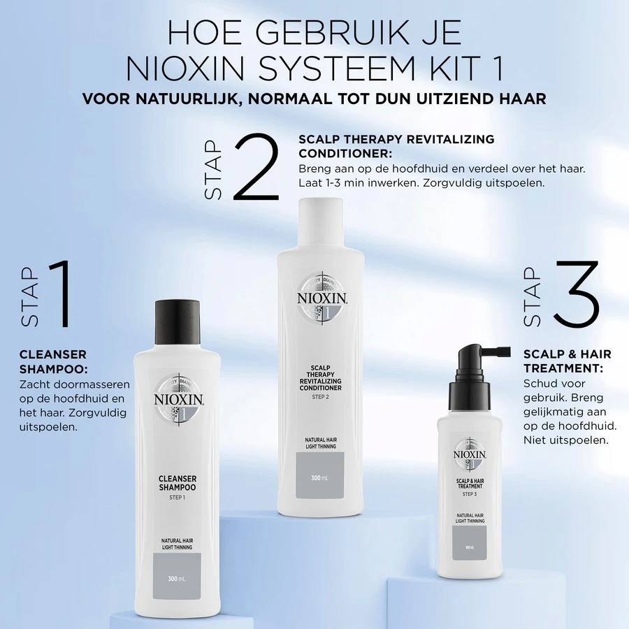 NIOXIN biedt geavanceerde verzorging aan dunner wordend haar. De NIOXIN-producten zijn ontwikkeld om haar vanaf de basis te versterken, te voeden en te herstellen. De perfecte basis voor dikker, voller uitziend haar. Ervaar het 3D Care Systeem: het 3-delige systeem dat speciaal is geproduceerd om derma, density en diameter aan te pakken. Voor dikker, voller uitziend haar binnen 30 dagen.