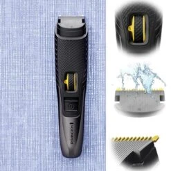 Door de zelfslijpende, verwijderbare, wasbare snijbladen is deze baardtrimmer gemakkelijk in onderhoud. Wanneer het tijd is om uw baardtrimmer te reinigen, ontkoppelt u simpelweg de snijbladen en spoelt u deze af onder de kraan. Met de anti-slip grip kunt u altijd gecontroleerd trimmen.