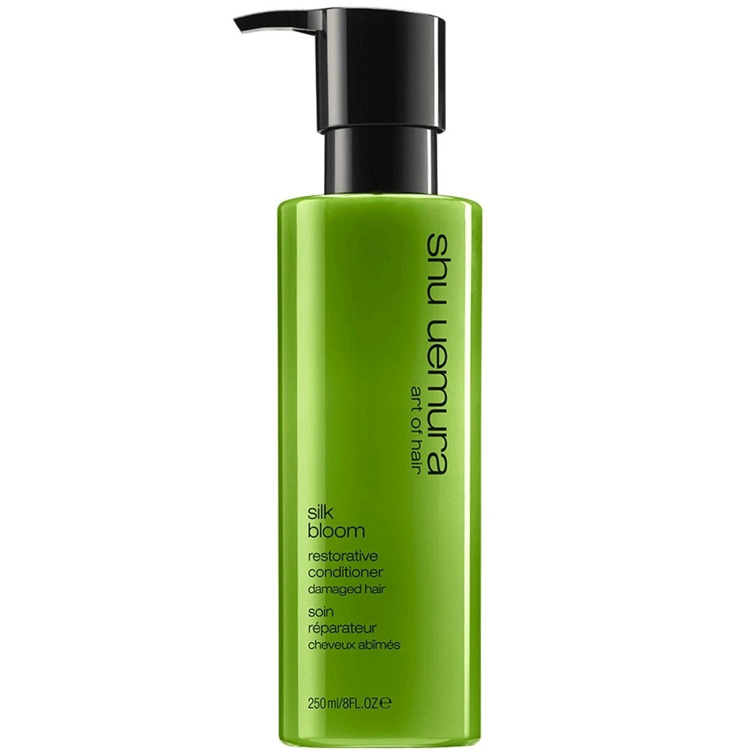 Shu Uemura’s Art of Hair Silk Bloom Restorative Conditioner met ceramiden, arganolie en vitamine E herstelt beschadigde haarvezels van de aanzet tot de punten. De voedende formule repareert de haarstructuur van de vezel, geeft het beschadigde haar zijn volume en glans terug en voedt het haar intensief, zonder het te verzwaren. Rijke arganolie hydrateert het haar intens, laat het stevig en gezond aanvoelen en geeft het haar een prachtige glans. De voedende en herstellende conditioner is ook geschikt voor gekleurd haar.