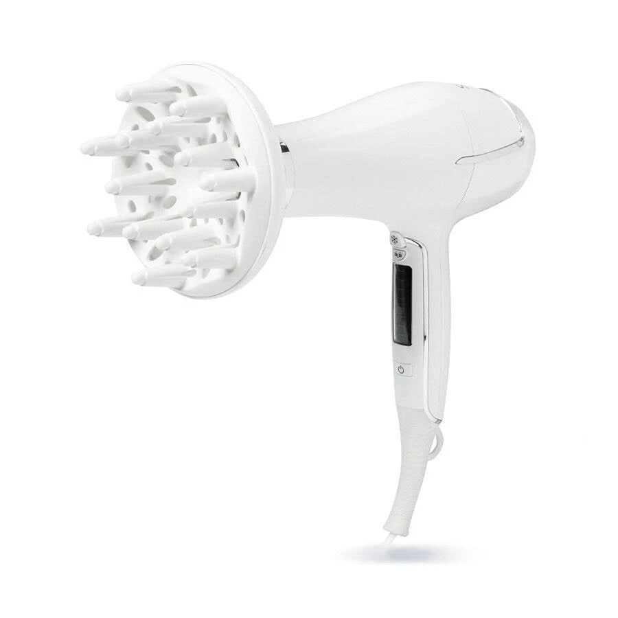 Deze innovatieve ionische haardroger maakt het mogelijk om je haar sneller te drogen en te stylen, zonder het uit te drogen of te beschadigen. Pluis wordt geëlimineerd, en het vochtgehalte van je haar blijft optimaal in balans. En dankzij de bijgeleverde concentrator en diffuser kun je je haar zeer precies stylen, of juist meer veerkracht en volume geven. Het resultaat: mooie, glanzende en perfect gestylde lokken, elke dag weer!