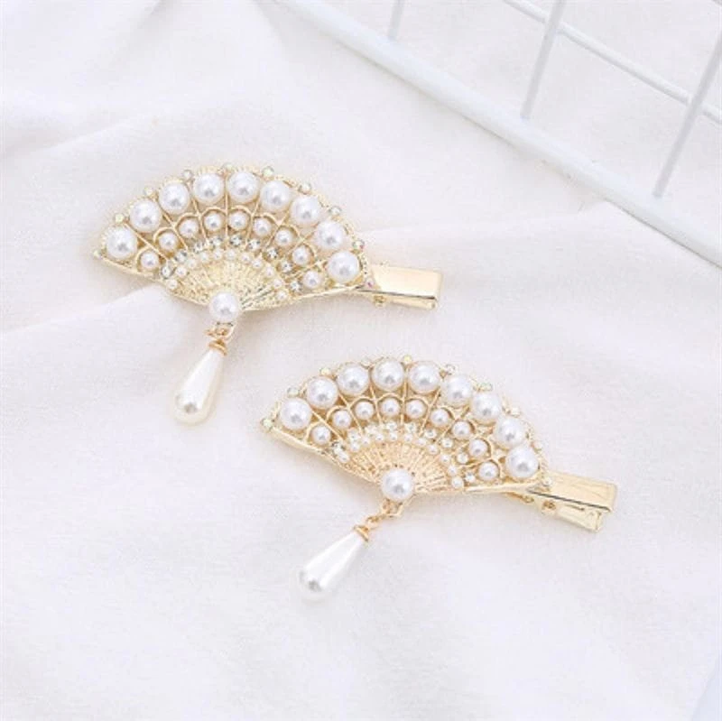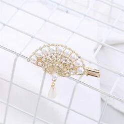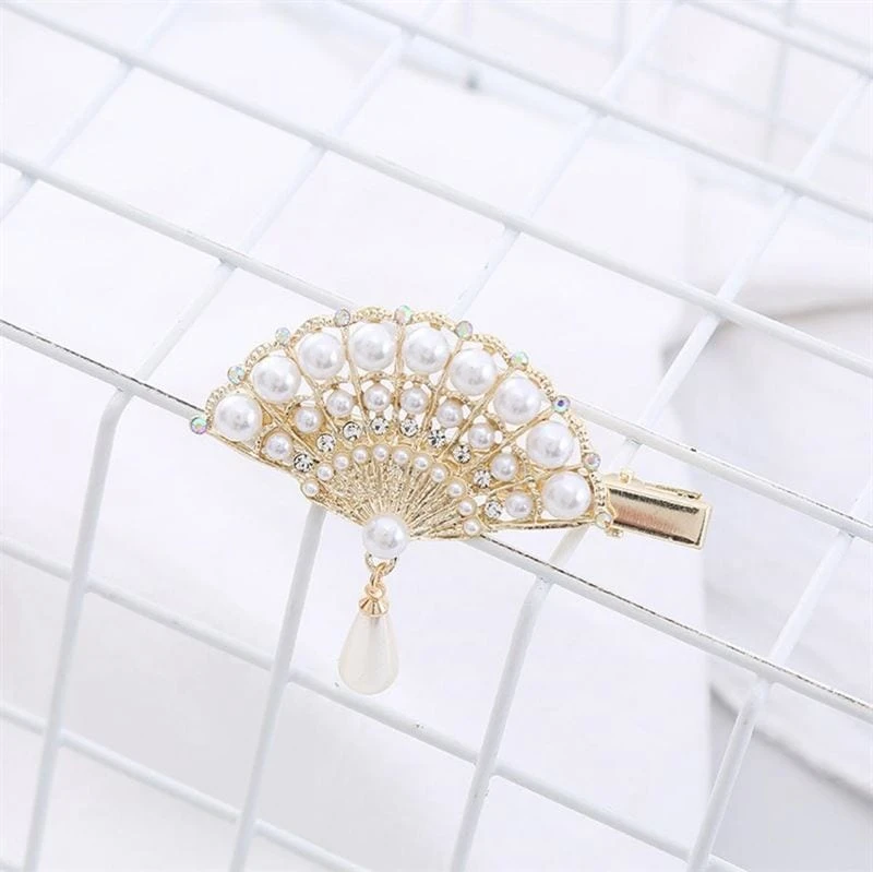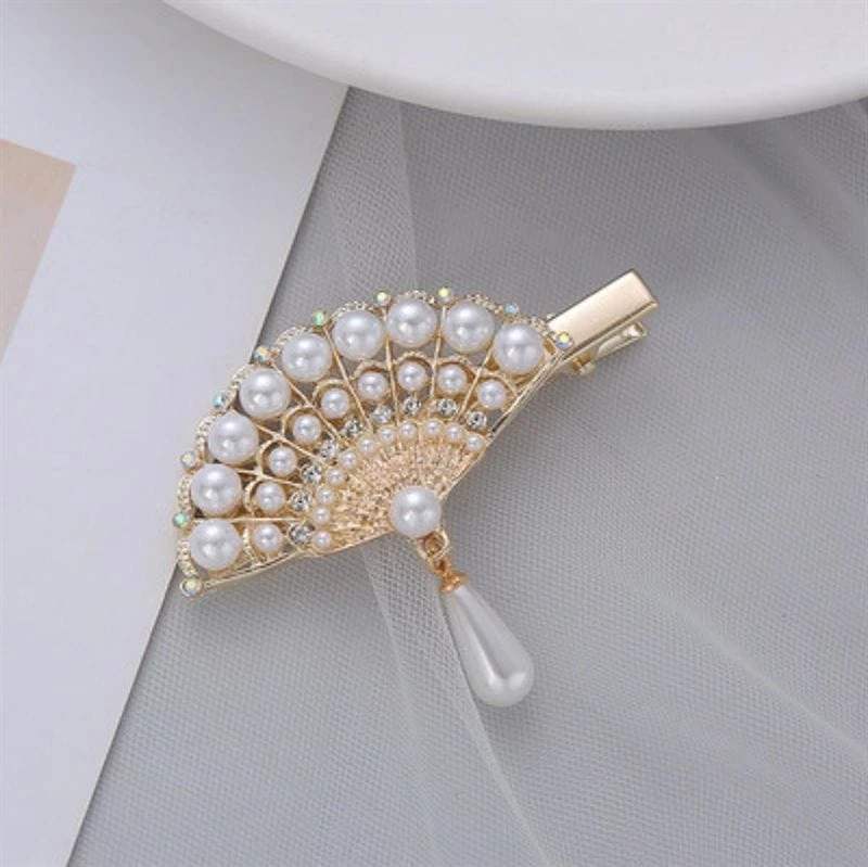 Materiaal: metaal en imitatieparels. Afmeting: 6 x 4,5 cm.