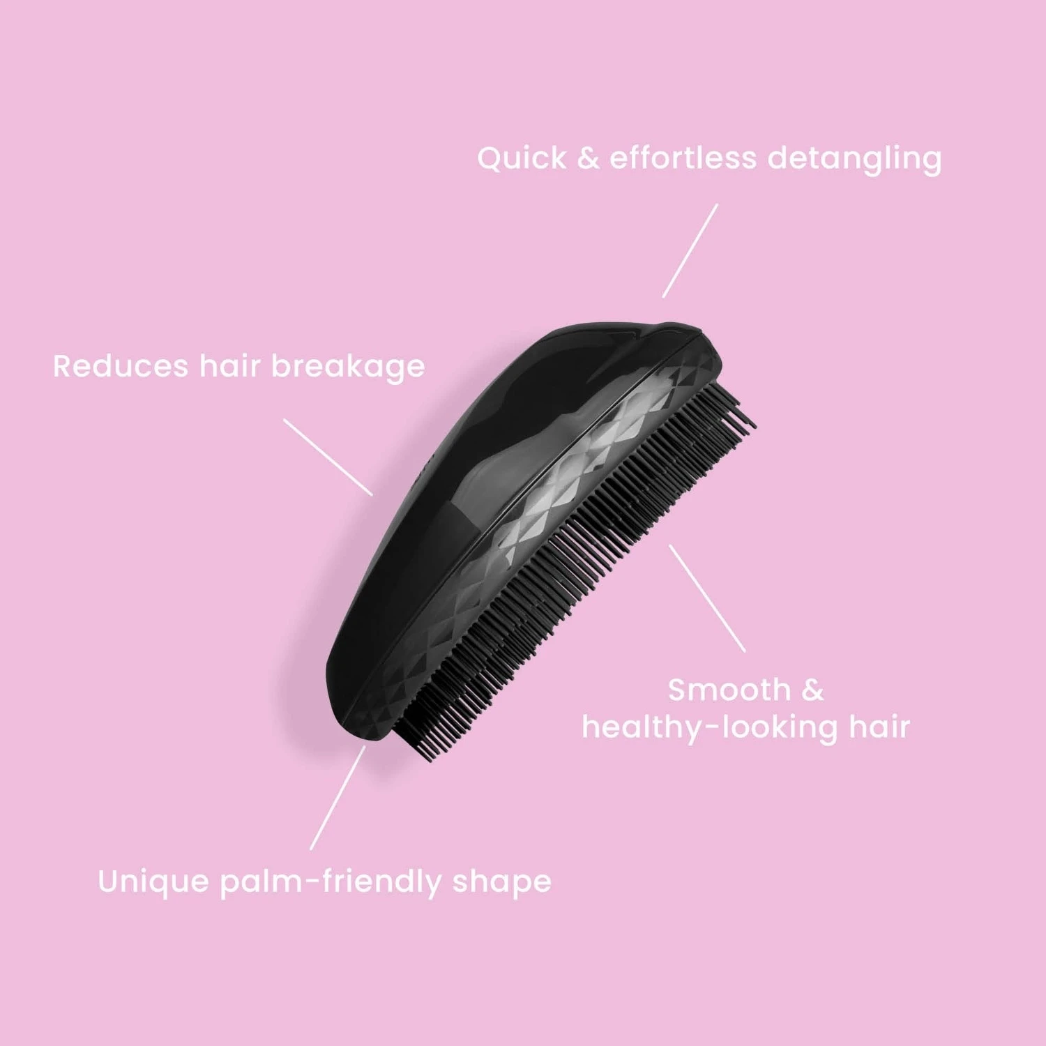 Deze borstel is ideaal voor normale haartypes, hij glijdt door nat en droog haar en helpt klitten los te maken zonder trekken en trekken. De gepatenteerde twee-lagen tanden zorgen voor een pijnloze ervaring – de lange tanden ontwarren, terwijl de kortere tanden de haarschubben glad maken. Het resultaat is glad en gezonder uitziend haar met meer glans.