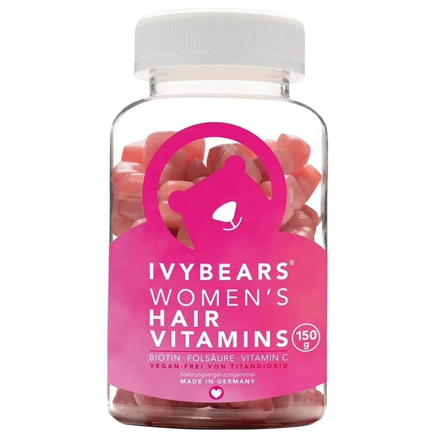 IvyBears haarvitaminen zijn heerlijke kleine beren die uw haar in topvorm brengen! Boordevol biotine, foliumzuur en tal van vitamines gaat dit beauty food haarverlies tegen om de dichtheid van het haar te verbeteren. De aanwezige biotine, ook bekend als vitamine B8 of vitamine H, bevordert de natuurlijke productie van keratine, de bouwstof van haar en nagels. De haargroei wordt ondersteund, evenals de kracht en glans van het haar.